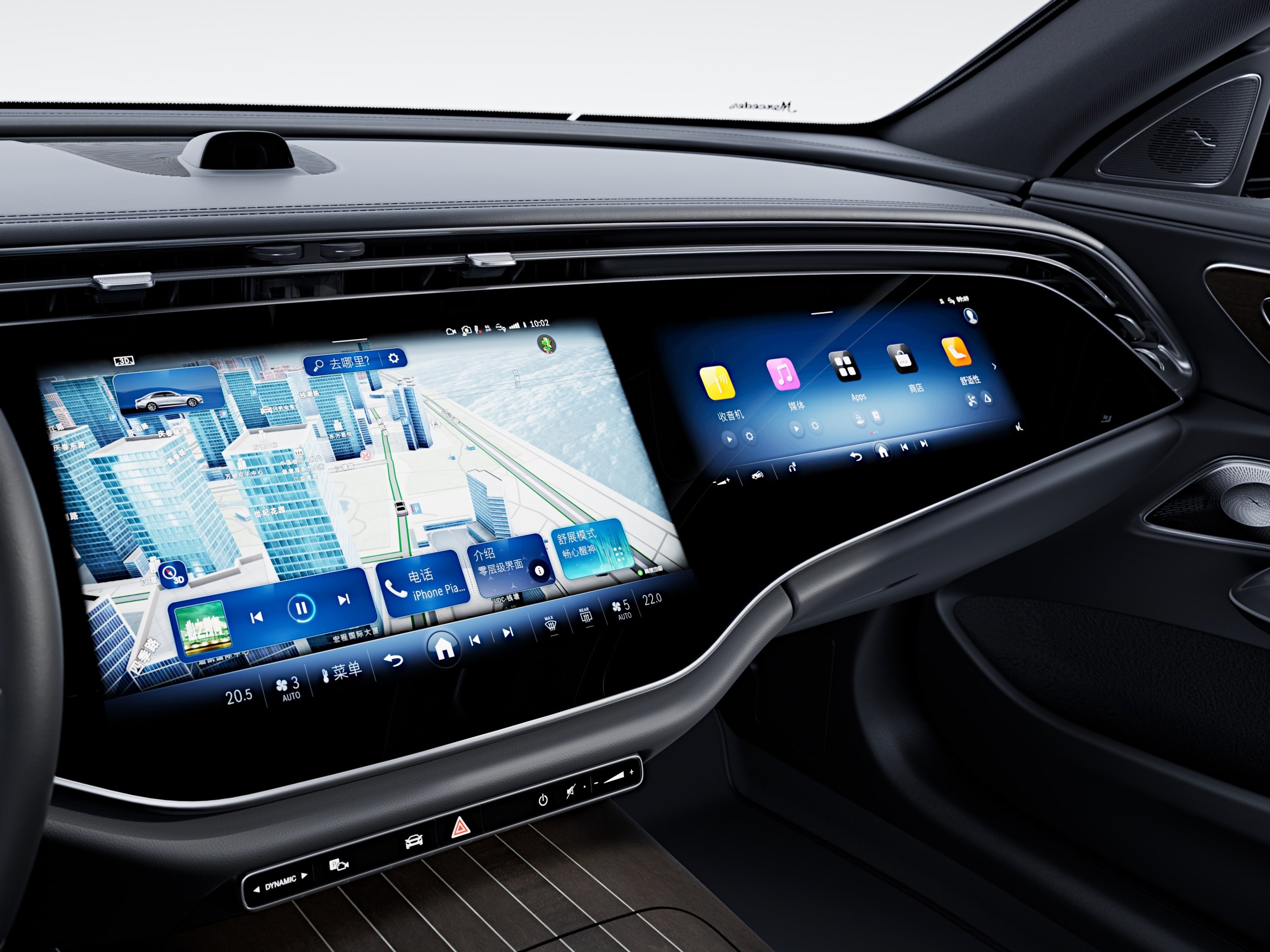 進(jìn)入全新奔馳E級(jí)車內(nèi),可以說豪華+科技風(fēng)相碰撞,整體氛圍非常吸睛,而車內(nèi)最耀眼的部分自然是全新大尺寸MBUX超級(jí)屏,這塊屏幕首發(fā)搭載了第三代MBUX智能人機(jī)交互系統(tǒng),同時(shí)也是豪華品牌中首款搭載高通8295芯片的車型,從而實(shí)現(xiàn)更多第三方車載應(yīng)用的搭載,例如抖音、玩游戲等等。此外,全新奔馳E級(jí)新增自拍攝像頭,支持人臉識(shí)別以及場(chǎng)景模式,便于用戶通過Zoom、Webex等拍攝照片或參加視頻會(huì)議(支持5G網(wǎng)絡(luò))